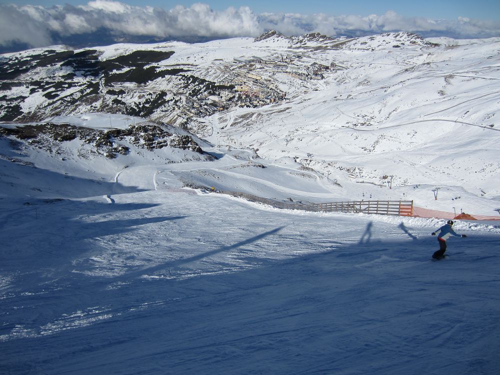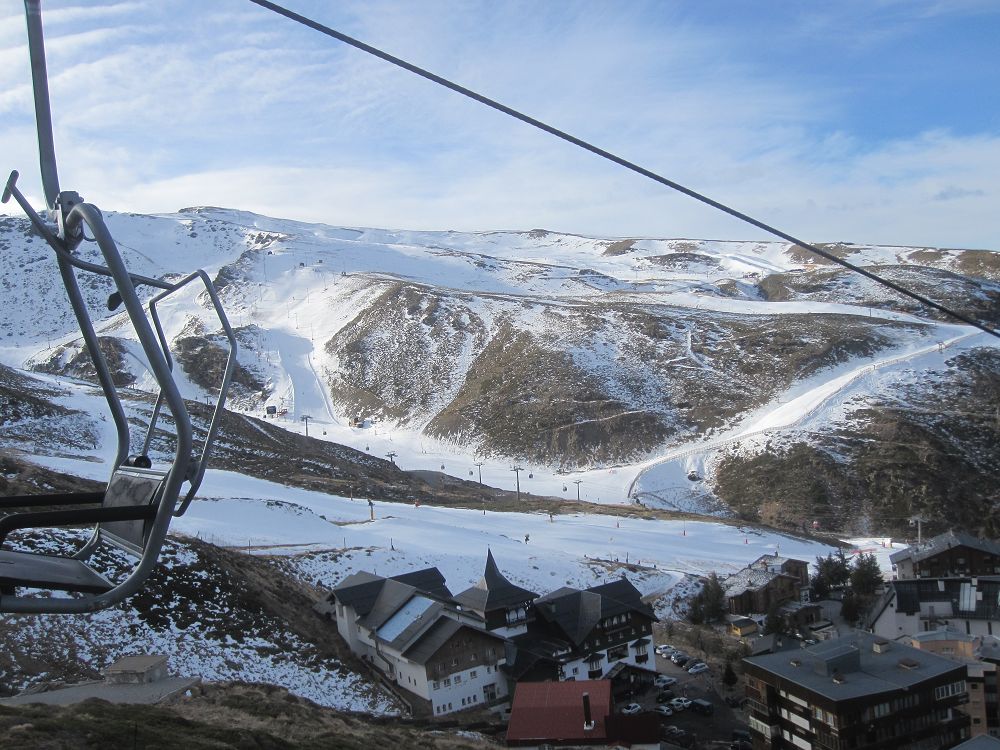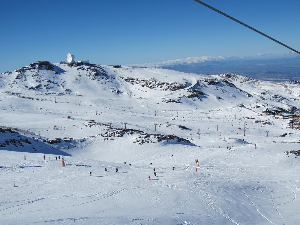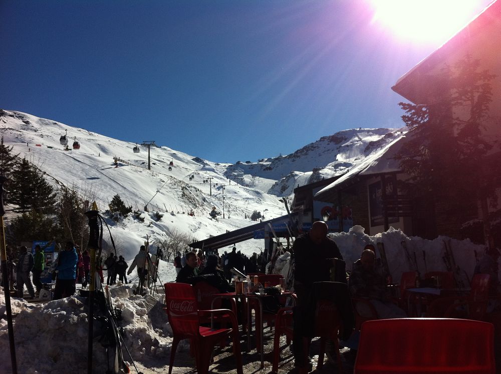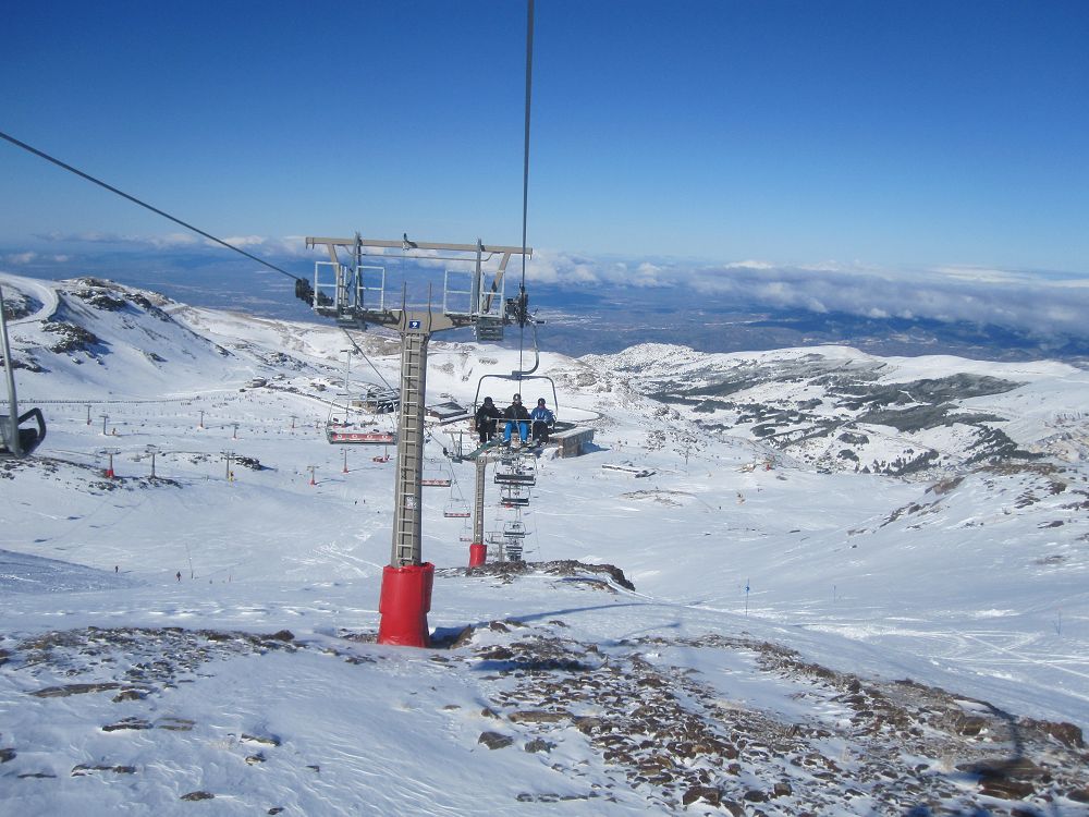 Skidåkning precis vid Medelhavet. Hur låter det? Det är möjligt, och behöver inte alls bli särskilt dyrt. Vi hade ruggig tur med vädret, kalt på bergen när vi kom, kraftigt snöfall första dygnet och kalt när vi åkte igen. Liftkort kostade cirka 2000 kr för en vecka, flyg t/r Landvetter, Göteborg till Malaga cirka 1600 kr med extra väska och skidbag med Norwegian Air. En fet Mercdes Vito för en vecka kostade cirka 3000 kr med en full tank. Boendet i lägenheten kostade €580 för en vecka. Inte så farligt om man delar det med sex!