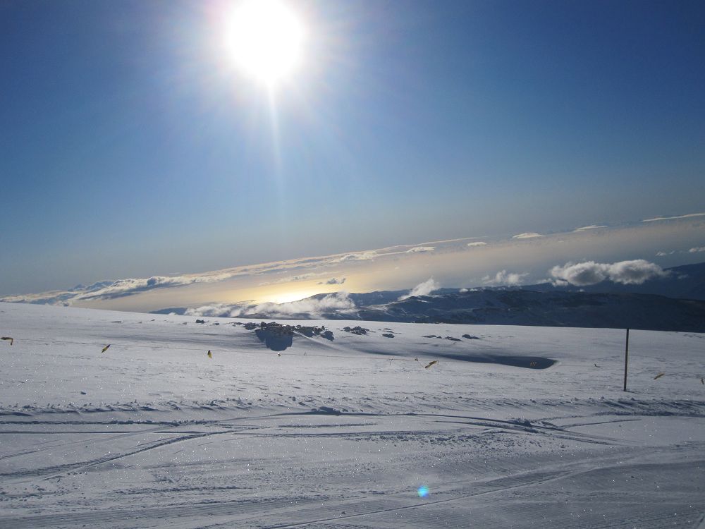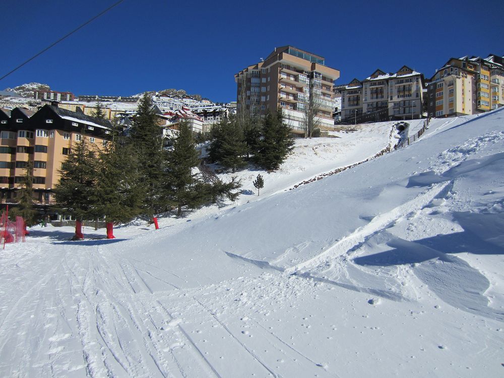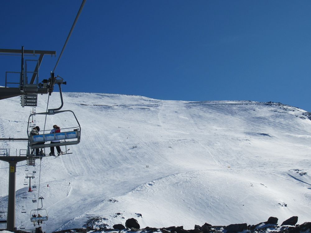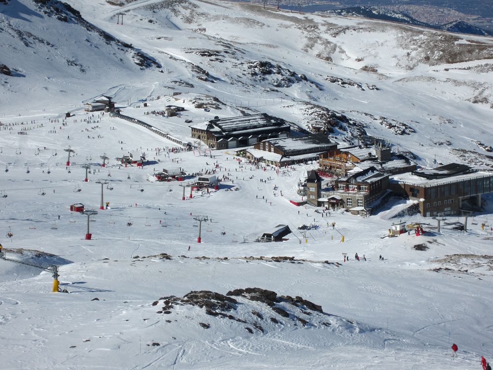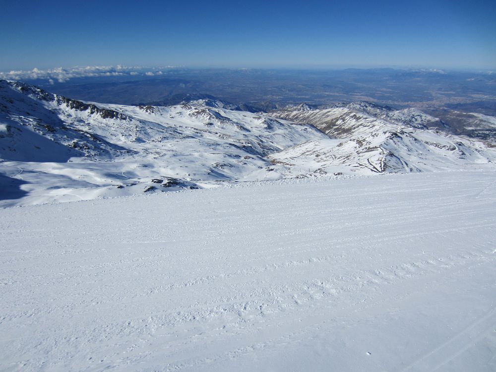 Skidåkning precis vid Medelhavet. Hur låter det? Det är möjligt, och behöver inte alls bli särskilt dyrt. Vi hade ruggig tur med vädret, kalt på bergen när vi kom, kraftigt snöfall första dygnet och kalt när vi åkte igen. Liftkort kostade cirka 2000 kr för en vecka, flyg t/r Landvetter, Göteborg till Malaga cirka 1600 kr med extra väska och skidbag med Norwegian Air. En fet Mercdes Vito för en vecka kostade cirka 3000 kr med en full tank. Boendet i lägenheten kostade €580 för en vecka. Inte så farligt om man delar det med sex!