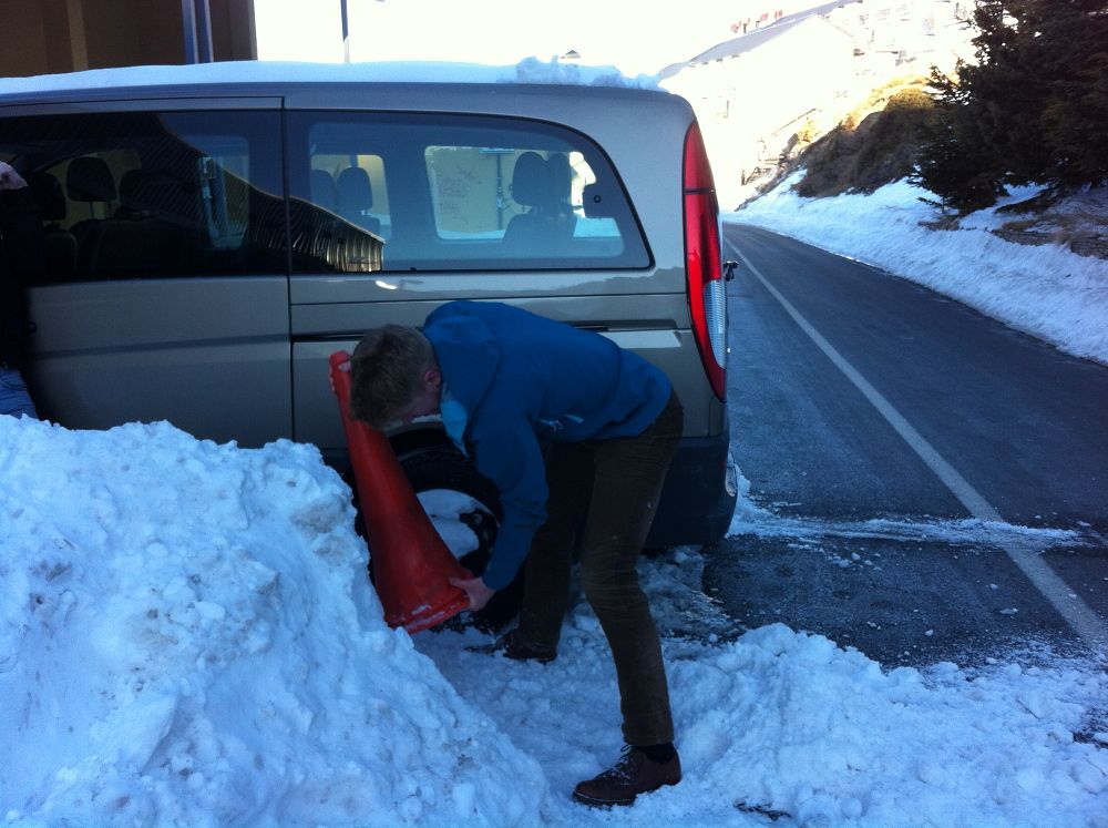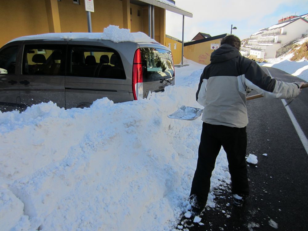 Bilen blev inskottad. Någon skyffel hade vi inte packat, en kona fick agera spade.